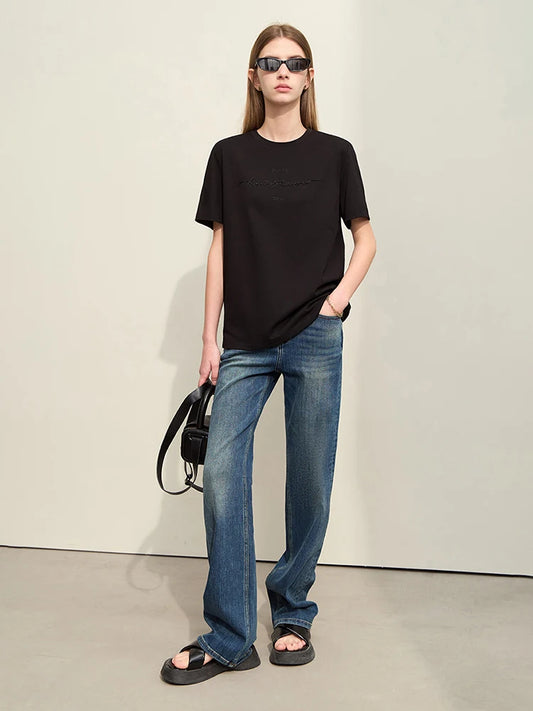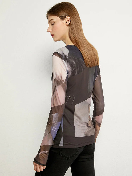 AMII Minimalism Long-Sleeved T-Shirt with Artistic Prints